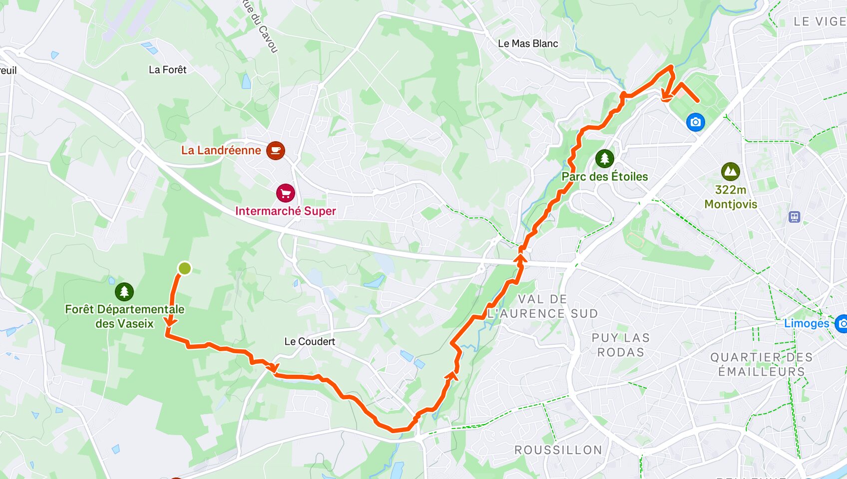 Top départ depuis la Forêt de Vaseix ! 🏁 Tu traverses les premières rues avec l’énergie du peloton, direction le Val de L’Aurence : un coin de verdure pour te mettre dans le rythme 🌳.