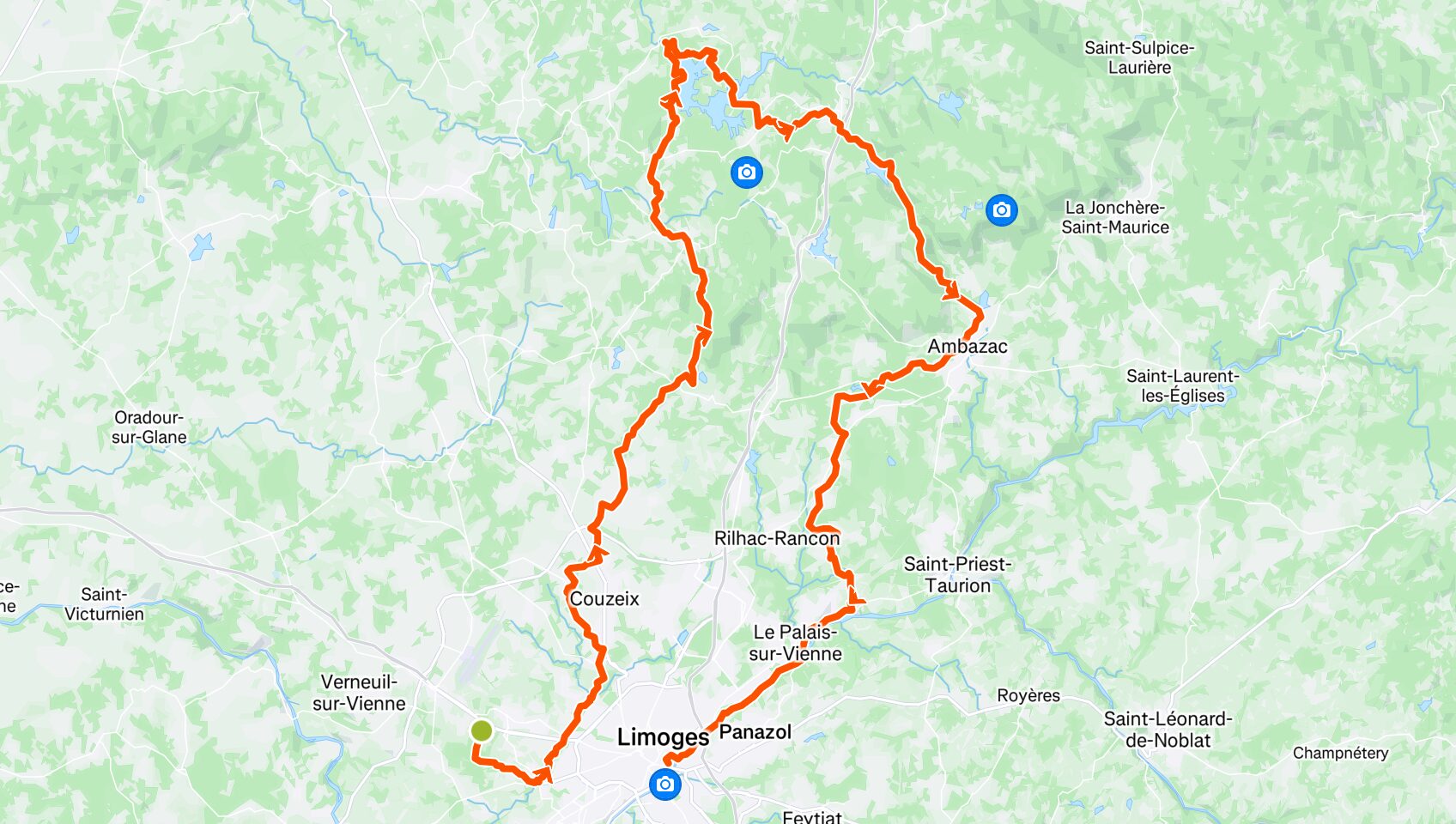 Top départ du mythique complexe sportif de Beaublanc ! Rejoins le Lac de Saint-Pardoux (Razès) au 35 ème km ! Puis profite d’un plat descendant jusqu’au 2ème ravito 🥤, au domaine de Muret, 60km. A travers la forêt, une montée t’attend pour te rendre à au Palais-sur-vienne, 70km, puis une douce descente le long de la Vienne, 75km.  Une fois là-bas, c’est le kiff, un doux plat vers la ligne d’arrivée, qui se trouve en plein coeur de Limoges ! 🏘️